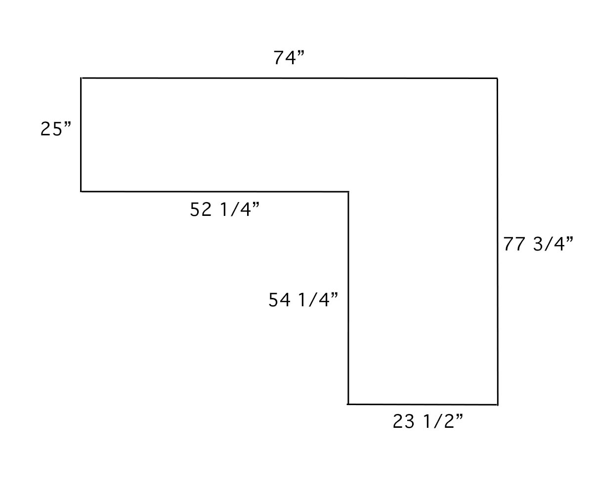 Dimensions: 77¾”W x 23½”D Return: 74″W x 25″D