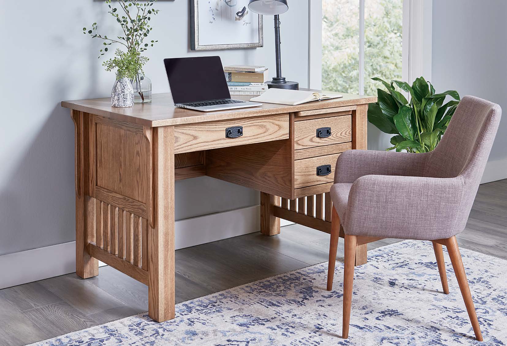 Versatile arts & crafts styling with flowing corbels accenting simple lines.