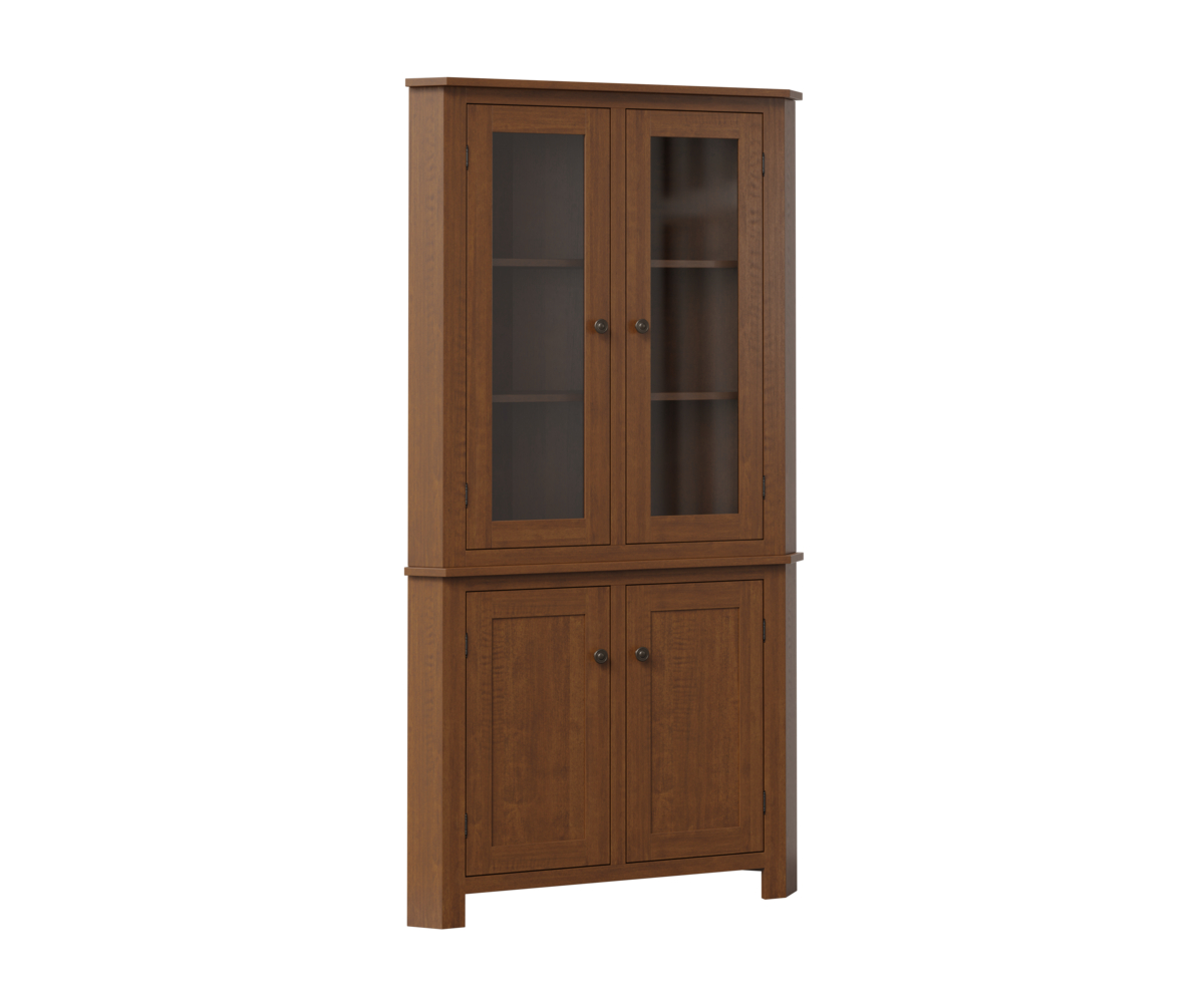 • Glass shelves in place of wood shelves